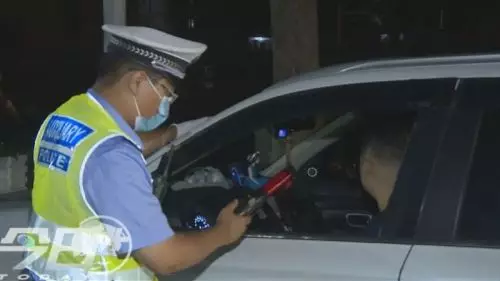 正值啤酒節,8月1日晚10點,青島交警在檢查點對過往的司機進行酒精測試。