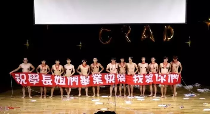 網友Dcard上載短片,並發文表示物理系的13名師弟,為了歡送即將畢業的師姐師兄,便特地準備了「裸體扇子舞」環節,有些人穿着肉色底褲,有的連底褲也沒有穿、全裸上場。