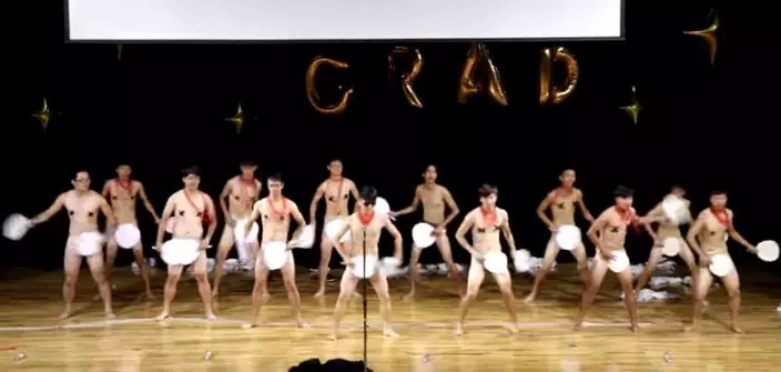 又到結束學年的時期,台灣的大學都紛紛舉行畢業典禮;位於高雄的國立中山大學在畢業典禮表演中,竟然有學生全裸大跳扇子舞,就連在坐觀賞的教授都拍手叫好。