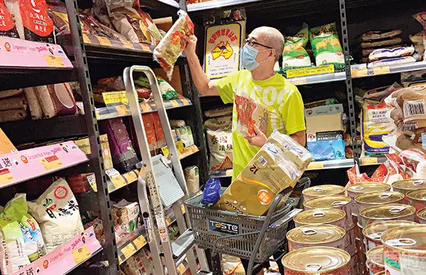 平常做慣住家男人的李成昌,一個人到超市「上糧」,選購食品及日用品,看來非常熟手,已買慣買熟。東周圖片