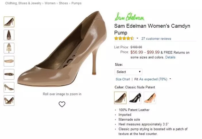 這對鞋在購物網站Amazon,標價56.99至99.99美元(約444.5至780港元)。真皮製造、鞋踭高3.5吋。