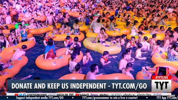 武漢已經成功抵抗新冠肺炎病毒,年青人湧到水上樂園開派對。TYT.com圖片