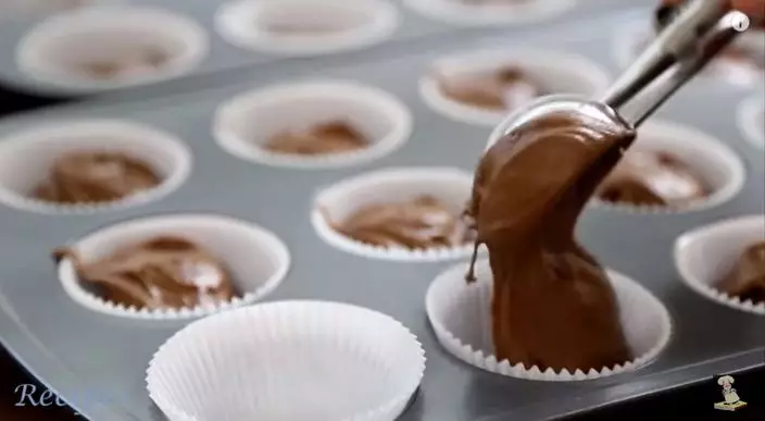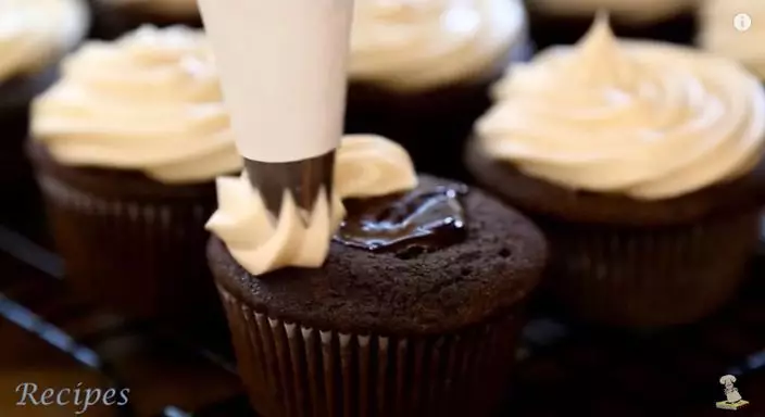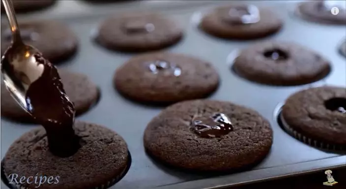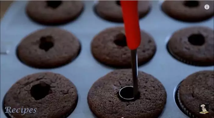待流心漿冷卻後就可「唧」進蛋糕洞裡。