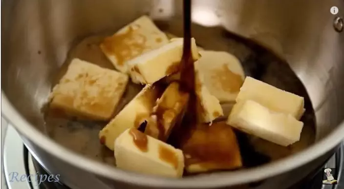 將牛油與啤酒放進器皿以中高火煮溶牛油,期間要不斷攪拌。