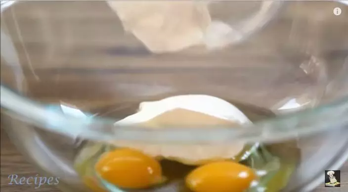 將雞蛋和酸忌廉放在另一個大碗用電動打蛋器打勻。