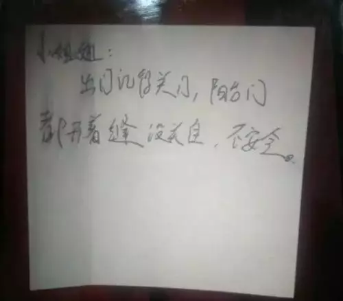 近日,24歲的包女士回到位於蕭山城廂街道的租房後,發現了一張字跡歪歪扭扭的字條。
