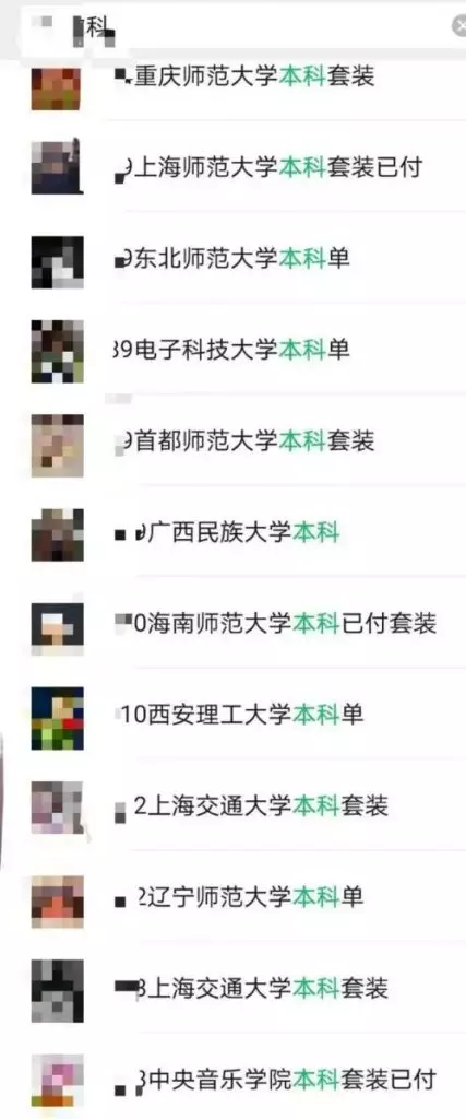 「一周左右收到貨,3~4天出電子版。」該賣家提供的名單顯示,其可定製包括重慶師範大學、上海師範大學、電子科技大學、中央音樂學院等幾十所高校的錄取通知書。