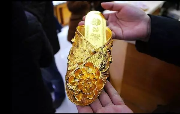 除了純黃金打造的內衣外,金舖更騷出金鞋及其他的飾,可能為農曆新年的購買潮打打氣。