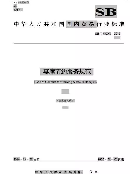 該規範規定對宴席服務「厲行節約,反對浪費」的基本規範要求,包括宴席的產品加工製作、服務理念等內容的相關標準及要求,並適用於各類大眾餐飲及中高檔餐飲服務單位,包括飯莊、酒家、酒樓、餐館(含飯店、賓館、酒店內的餐廳)等宴席服務節約的相關標準及要求。