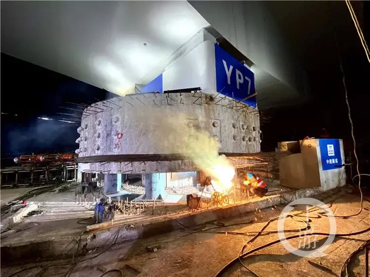 21日凌晨0:00,「五橋同轉」工程進入到最後的準備階段。上游新聞·重慶晨報記者在施工現場看到,一些施工人員正在橋墩下方忙碌著,檢查障礙物、打磨滑道、解除臨時固結……各種工序正有條不紊地推進。