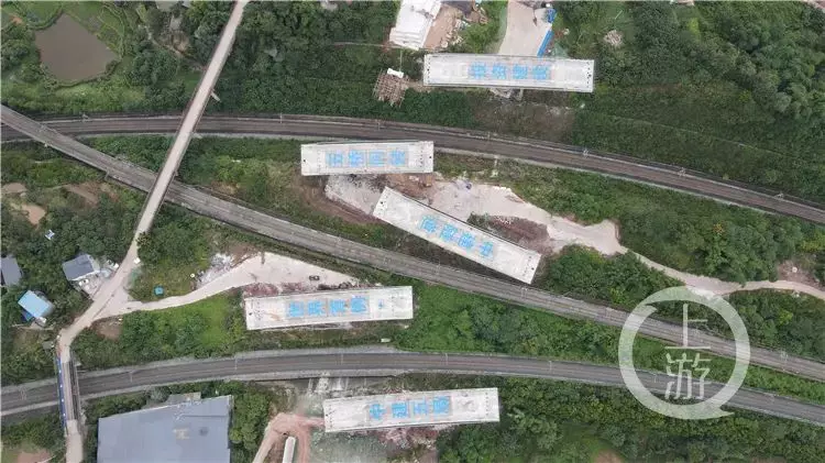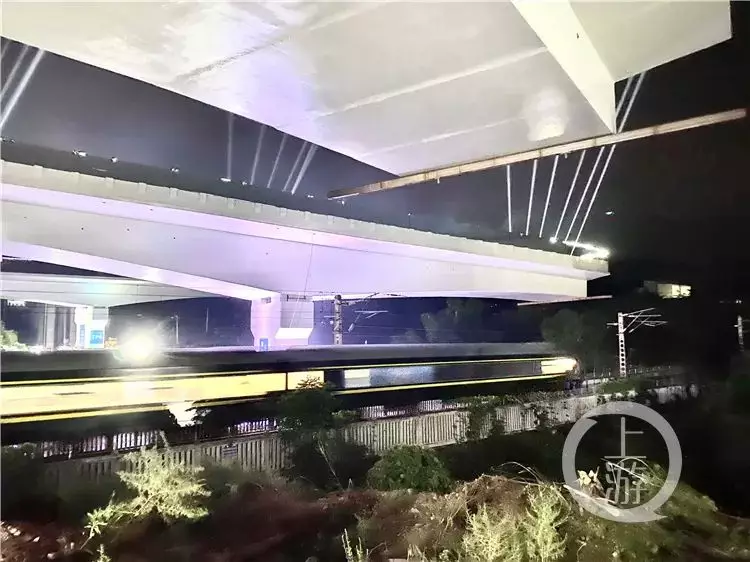 干昌洪介紹,快速路二橫線項目需交叉跨越鐵路線10條,其中五橋同轉施工區域跨越渭井上線、下線、蔡歌聯絡線三條繁忙的鐵路線,高峰期平均每3分鐘就有一輛列車經過。