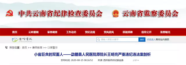 近日,雲南省紀委監委網站以《小官巨貪的雙面人——勐臘縣人民醫院原院長王明亮嚴重違紀違法案剖析》為題,詳敘了這名34歲便當上縣醫院院長的當地名醫,是如何一步步墮落的。