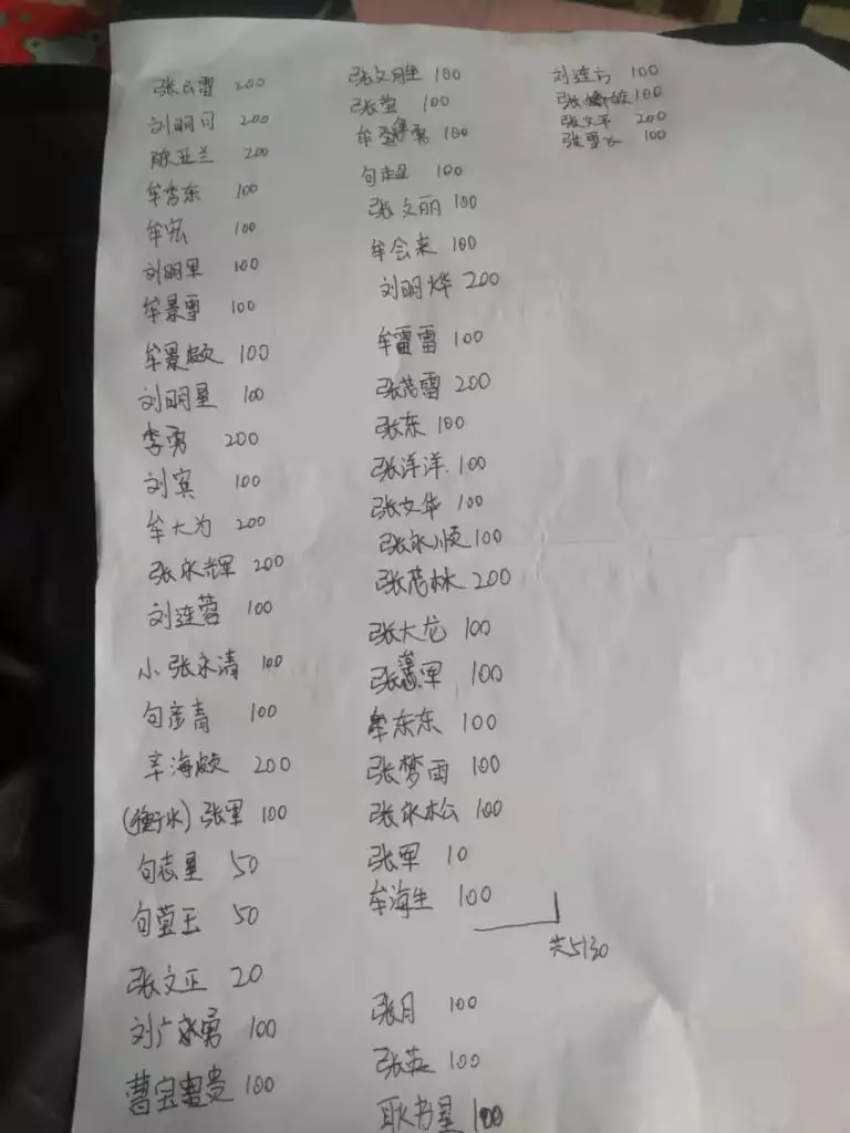 該村村民表示,村幹部曾在大張村村民的微信群中,曾發有村民的捐款明細。