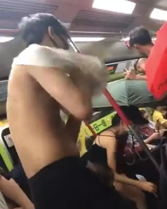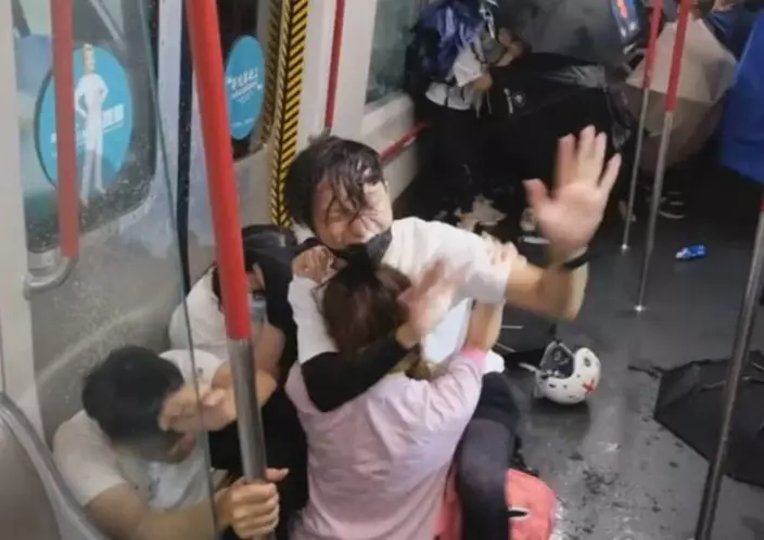 大量暴徒在車廂內換衫,扮作普通乘客。《堅料網》圖片