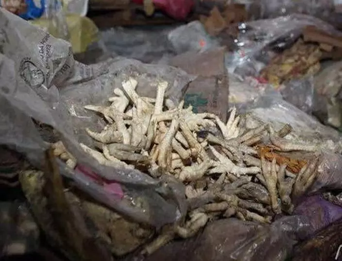 「泡椒鳳爪」更是今次走私凍品的「重災區」。有業內人士指,有些「色香味俱全」的鳳爪其實有幾十歲「高齡」,可能是來自異國他鄉,不法分子用過氧化氫等漂白劑浸泡,讓鳳爪胖乎乎、白嫩嫩,賣相特別好。
