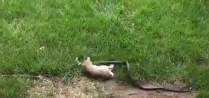 這場兔蛇激戰被人拍下並放上網,不過,片段最後並沒有拍到大黑蛇的最終下場,但兔媽媽護子的行為已讓人驚嘆不已。