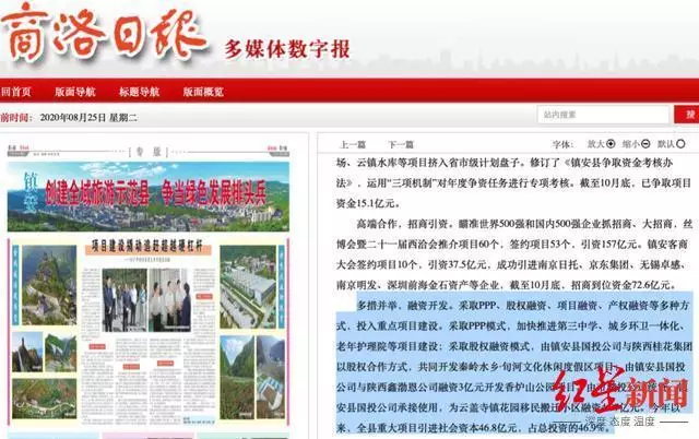 正是這一年,《商洛日報》在「項目建設撬動追趕超越硬槓桿」一文中,列舉了鎮安“多措並舉,融資開發”,投入重點項目建設的業績,其中就包括採取PPP模式,加快推進第三中學項目建設,當年“全縣重大項目引進社會資本46.8億元,佔總投資的46.9%。”