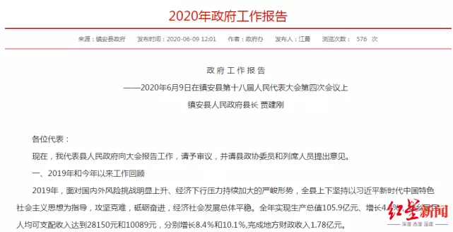 鎮安縣2020年政府工作報告 圖據鎮安縣政府官網