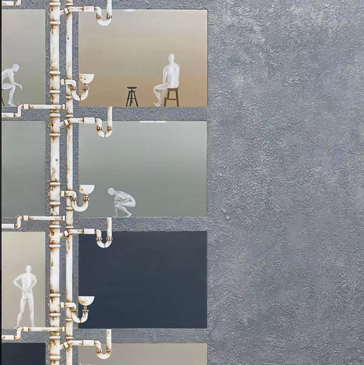 年輕藝術家兼「第三屆新藝潮國際藝術家獎」得主李欣儀,以水泥為主要材料創作的兩幅作品,表達疫情下人困在水管與建築樓層空間坐立不安的無奈。另一位年輕藝術家關舒文的作品《心平則靜》,以香港街頭常見的霓虹管創作,象徵現代城市並且具有代表性的香港文化元素。