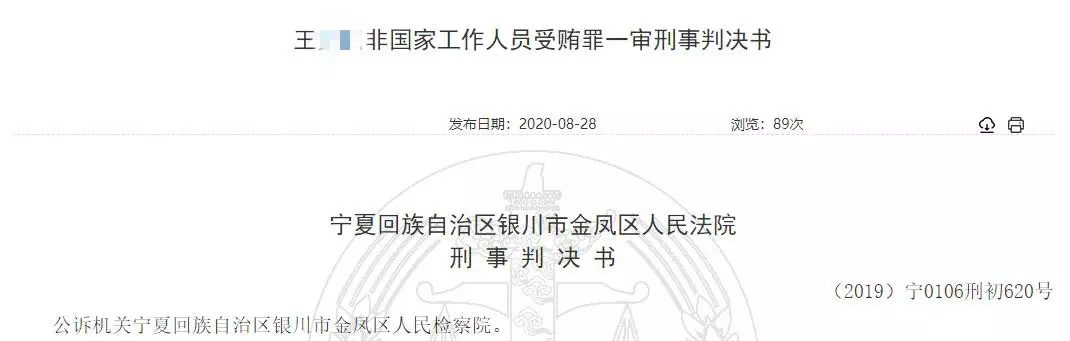 寧夏回族自治區銀川市金鳳區人民法院刑事判決書((2019)寧0106刑初620號)顯示,寧夏回族自治區銀川市金鳳區人民檢察院以銀金檢二部刑訴[2019]267號起訴書指控被告人王某田犯非國家工作人員受賄罪,於2019年11月20日向法院提起公訴。