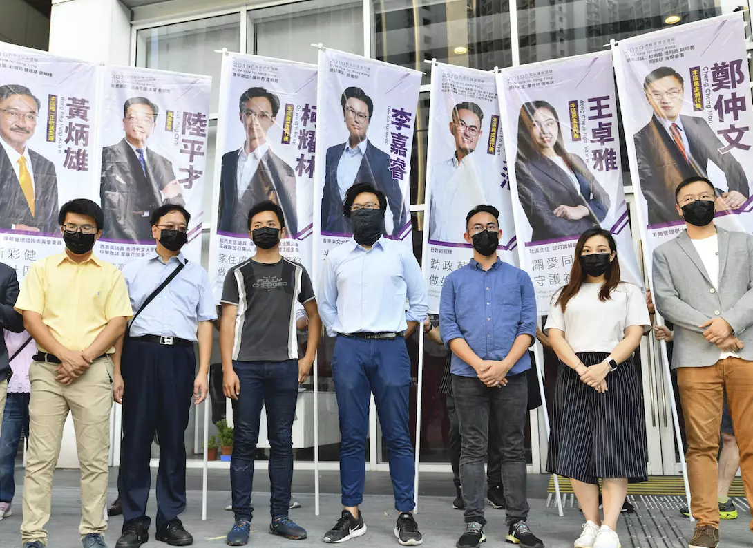 王卓雅(右二)、李賢浩(右三)及李嘉睿(右四)等4人,退出將軍澳民生關注組。資料圖片
