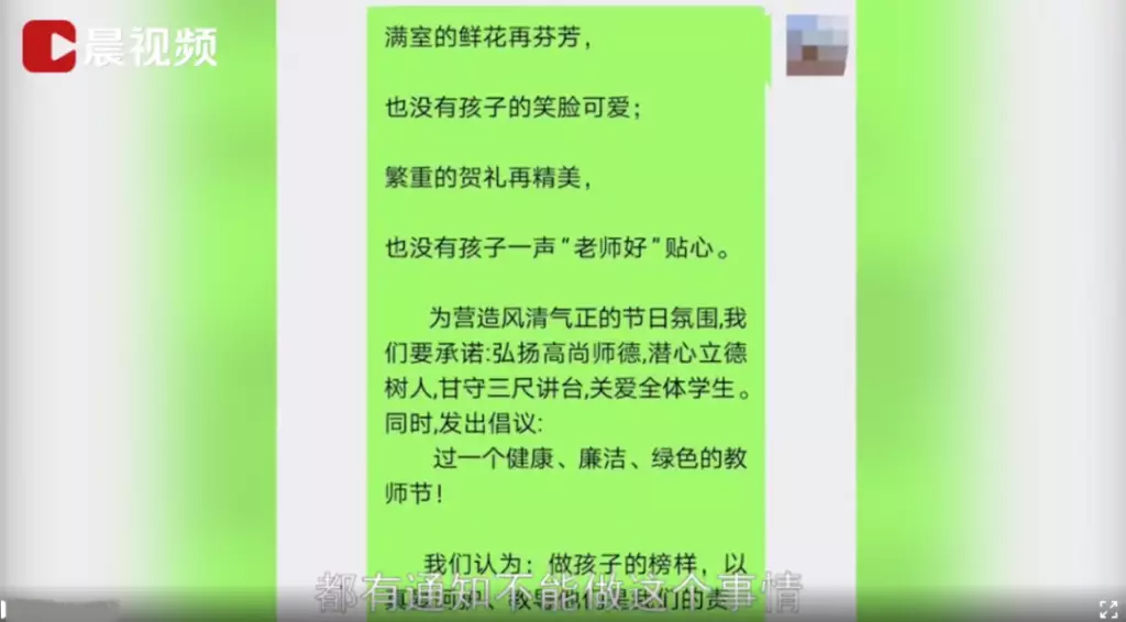 9月7日,福建福州,網傳一中學教師要求學生送教師節禮物。