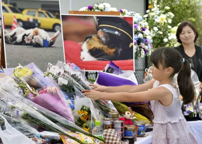十六歲的日本和歌山電鐵花貓站長「小玉」上周一病逝,和歌山電鐵公司周日為小玉舉行了喪禮,國內外有多達三千人出席,有粉絲流下不捨之淚。