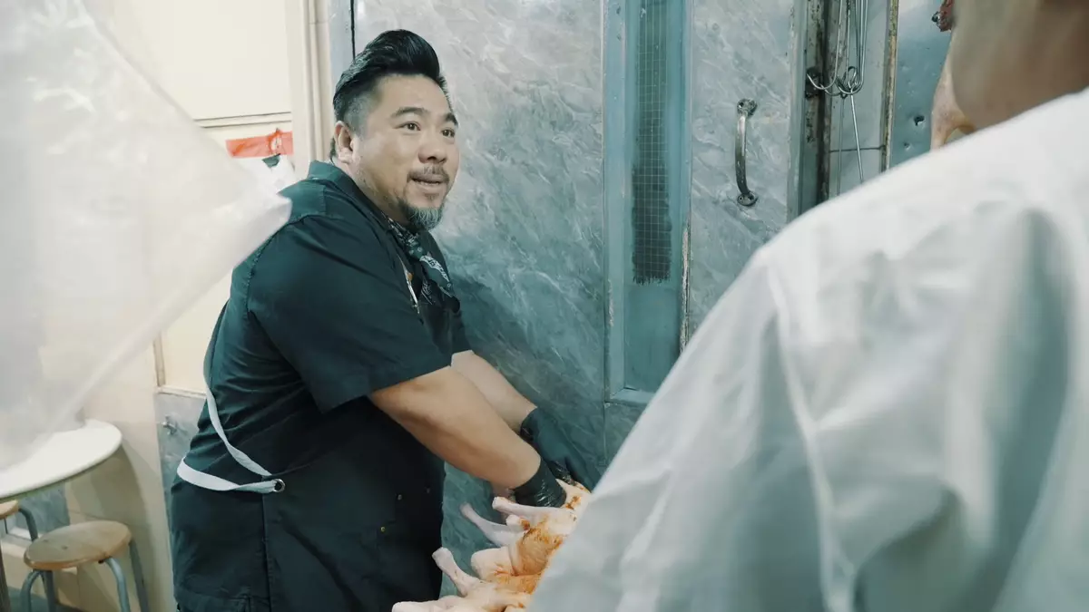 Christian幫手醃製燒鵝。