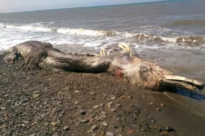 俄羅斯遠東庫頁島海岸有外型奇怪的巨型生物伏屍石灘,屍身嚴重腐爛。這隻「怪物」足足有兩個人高、長有羽毛、嘴部似海豚,貌似史前生物,目前未知屬於甚麼物種。