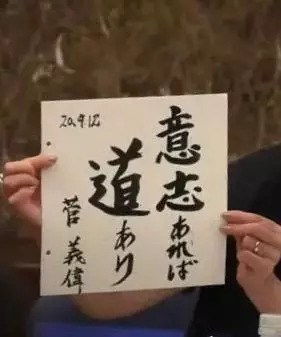 看看菅義偉的書法:「有志者事竟成」,的確是他人生的寫照。
