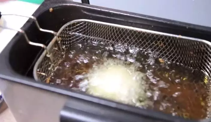 最後就可以將「蘇格蘭蛋」放進190度的熱油炸約三至四分鐘變金黃色就大功告成。