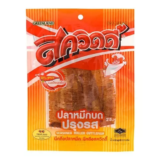 Greenland作為泰國魷魚界零食皇,每逢到泰國也是「秒殺」零食之一!泰式魷魚零食,以口感硬作為特點,好處除了較「襟食」,也是越嘴嚼越香,當中魷魚片比較濕軟,用來下酒或伴汽水,真是絕配!不吃辣的可選原味,也可滿足口腹之欲。