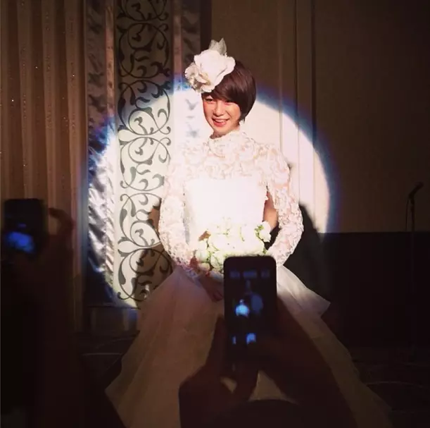 田中美保14日在部落格中post咗與老公稻本潤一的婚宴照,只見她連換兩套婚紗,模樣相當可愛。兩公婆看起來恩愛甜蜜,她透露在補辦完婚宴後,隨即出國度蜜月,目前還在休假中。