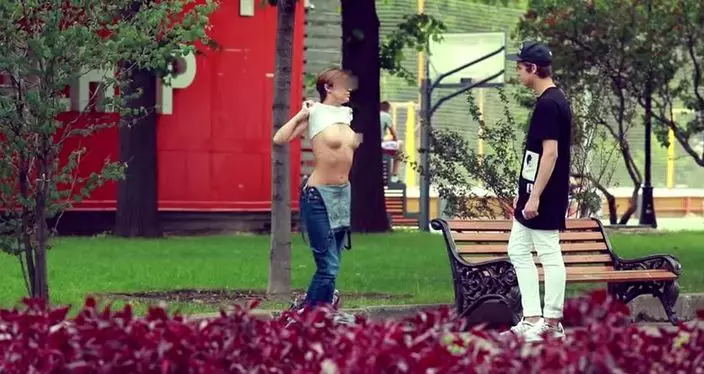 戰鬥民族女士有多勇悍?俄羅斯有人做街頭實驗,揭露有女子為賺外快不但願與陌生男子當街激吻,更甚者公然裸露上身。