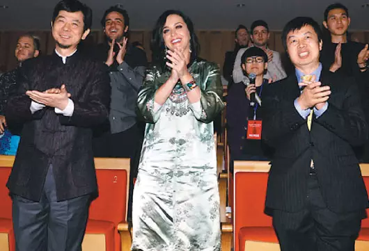 Katy Perry 星期日抵達北京,獲邀欣賞中央民族樂團的表演,又俾面著中國旗袍,相當美艷。樂團以傳統中國樂器表演出多隻樂曲,但到尾聲時,卻奏起 Katy 的作品《Roar》,她更即場感動到落淚。