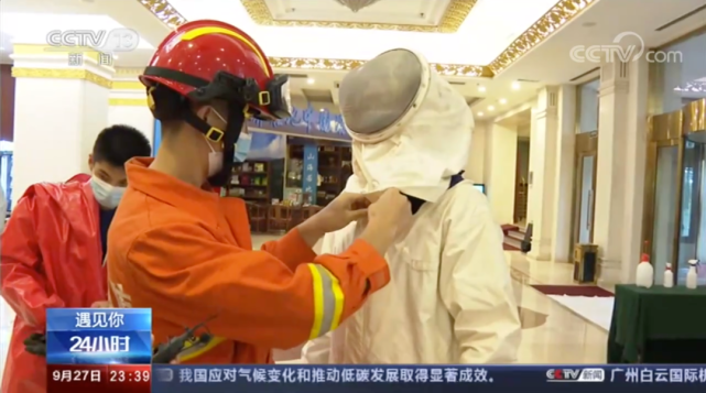 大連市消防救援支隊中山大隊魯迅路站戰鬥員 靳海波:防蜂服,褲子和衣服都是連體的,頭盔上有網,能看到前面視野。