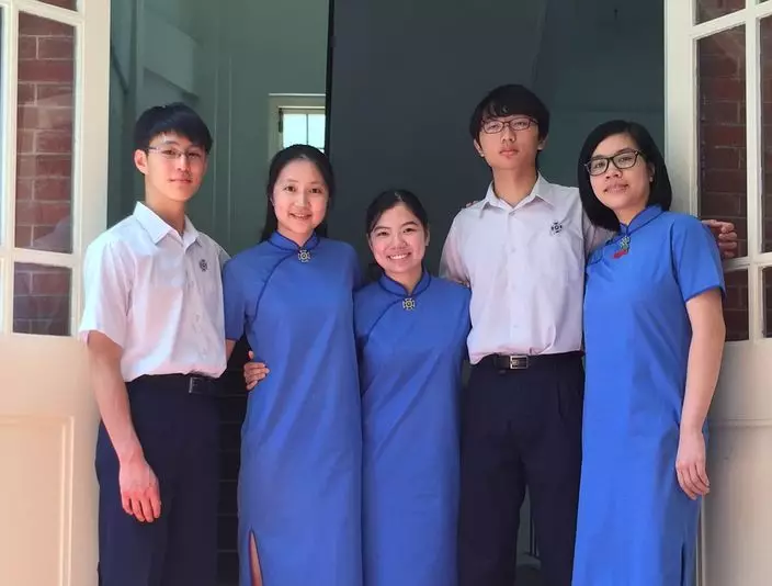 考獲45分滿分的黎卓彥(左一)已獲劍橋大學、港大與中文取錄。