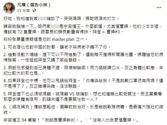 雖然社交媒體充斥著各種陰謀論,話美國總統特朗普確診新冠肺炎,只是詐病打選戰。但這些忖測,可能高估特朗普了。