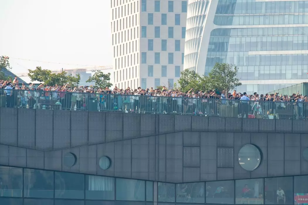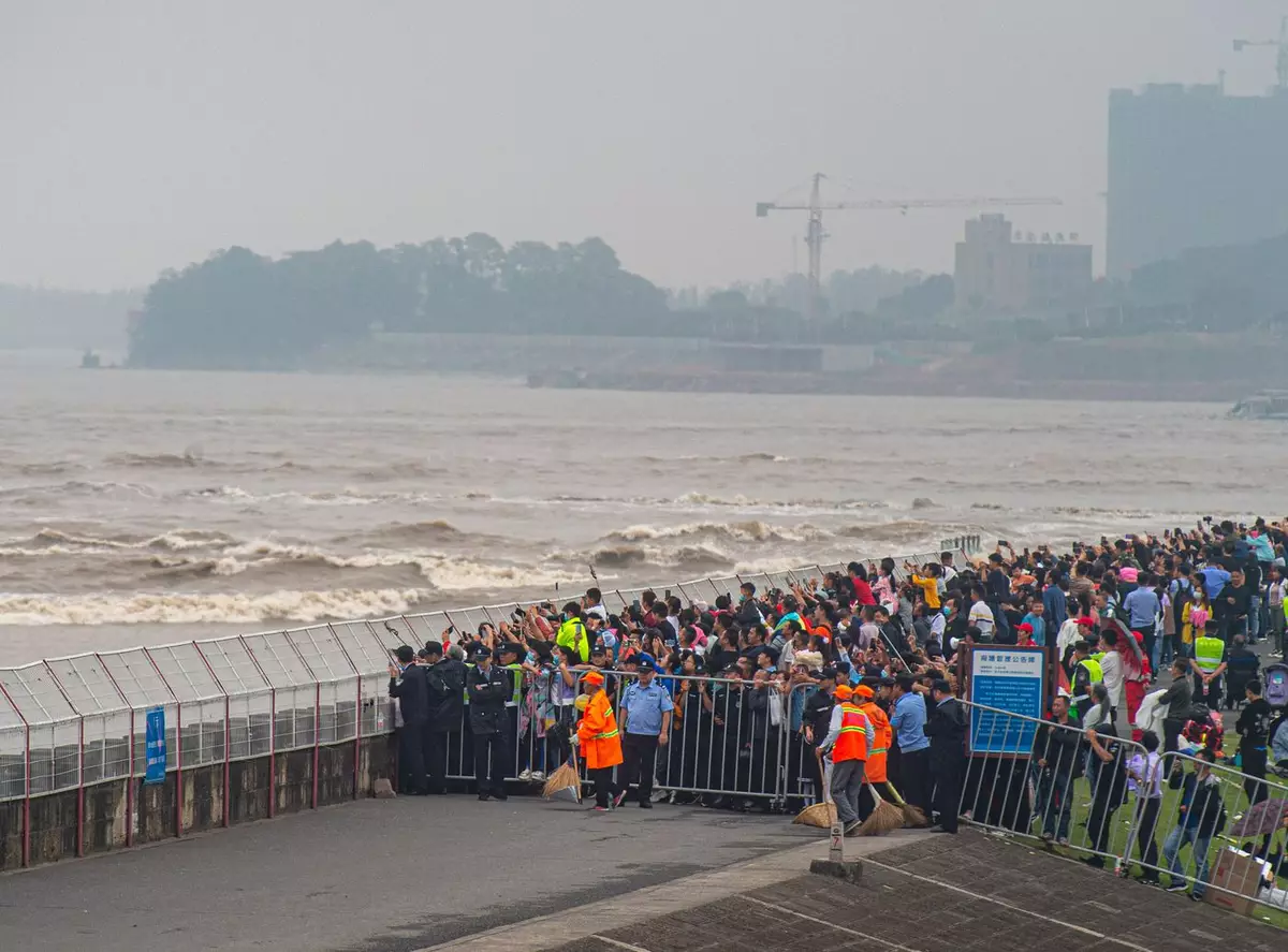 兩萬多名觀潮者聚集,爭相目睹「一綫潮」。