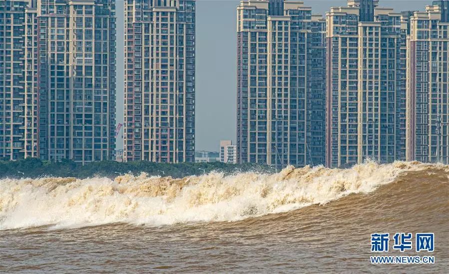 錢塘江大潮,自古以來被稱為天下奇觀。今日為農曆8月18,兩萬餘名觀潮者聚集在觀潮勝地浙江海寧鹽官,爭相目睹「一綫潮」。近3年最大錢塘江大潮呼嘯而至,潮高近兩米。