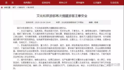 4日,文旅部發文提醒遊客注意安全: