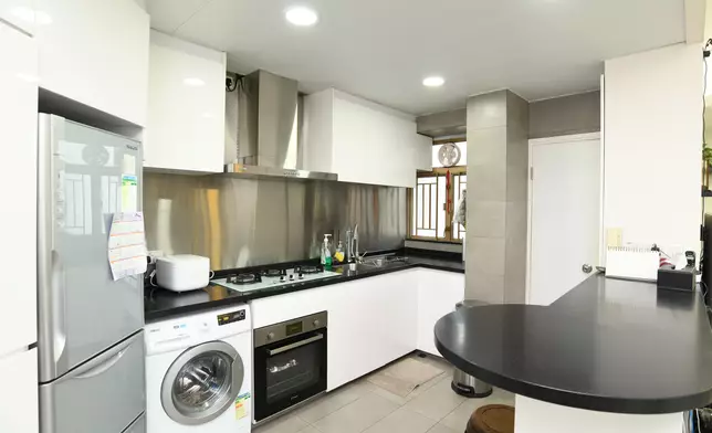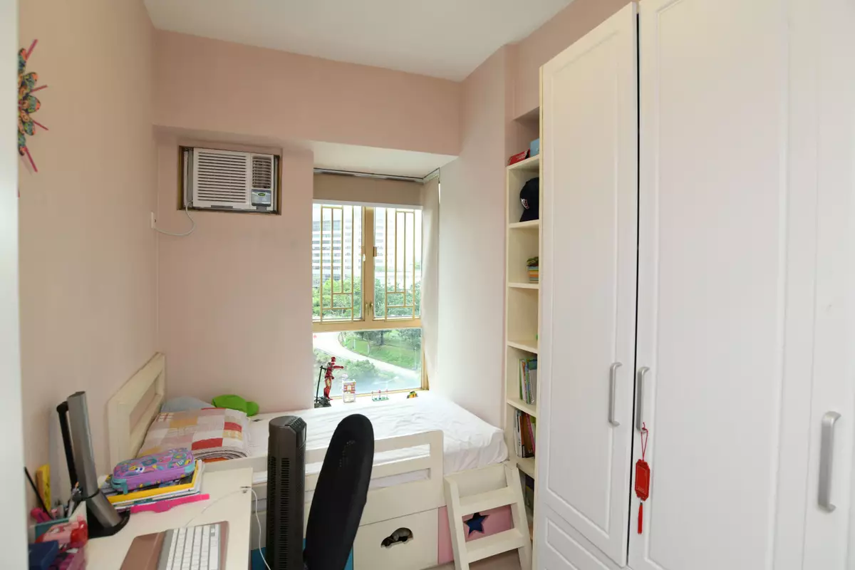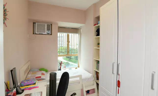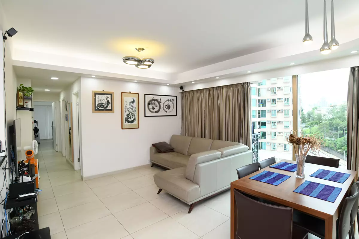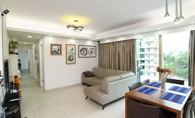 房間方面,採3房1套設計,其中主人套房的原裝大窗本為面向附近一帶的學校,現改為面向亞皆老街,與大廳和其餘2房一樣,可眺望綠林景致,改動後主臥可擁對流窗,原有的窗台位置則變身成入牆櫃,善用空間。