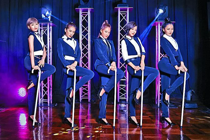 Super Girls穿上特別設計的黑色西裝拍攝MV。