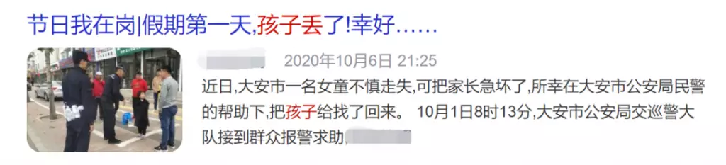 10月4日上午9時許,福建南安市省新派出所接到群眾報警,稱其將小孩子忘在南安北(省新)高速服務區,需要幫助。