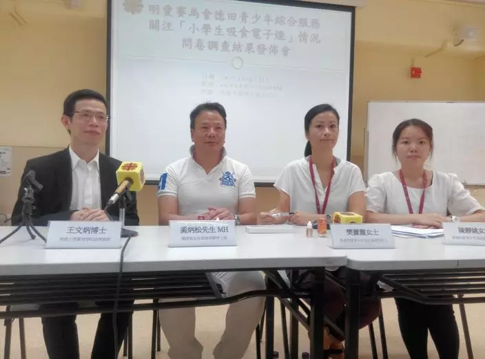 明愛賽馬會德田青少年及綜合服務於本年五月及六月,在四間觀塘區青少年中心及社區中心,向三百六十一位小一至小六學生進行調查,發現六至七歲的學童曾經吸食電子煙。當中十至十二歲的受訪組群中,更有接近三成人清楚知道售賣電子煙的途徑。