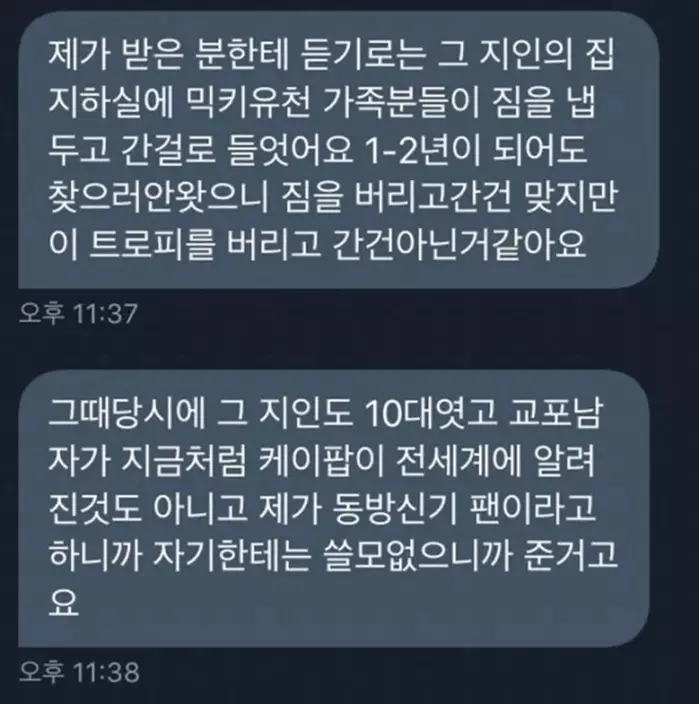 其後事件在網絡上引起了熱烈的討論,賣家才出面解釋:「當年一位獎座由朴有天負責保存,他把獎座暫時放在美國居住的親人家中,就回到韓國,期間由於雙方長時間沒有聯絡,親人就把獎座轉贈給喜歡東方神起的我。」表示自己也是迫不得已才決定出售。