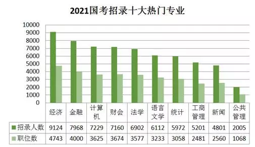 中公教育專家通過對整個職位表進行分析,將專業進行排名,發現經濟類專業人才需求量最大,以招錄9124人高居榜首,金融類緊隨其後,說明2021國考更傾向於招錄懂經濟的專業人才,為國計民生獻計獻策。此外,計算機類、財會類、法學類等專業的需求量也很大,招錄人數均超越6000人。