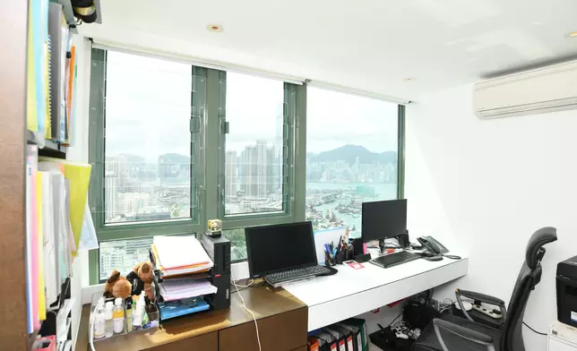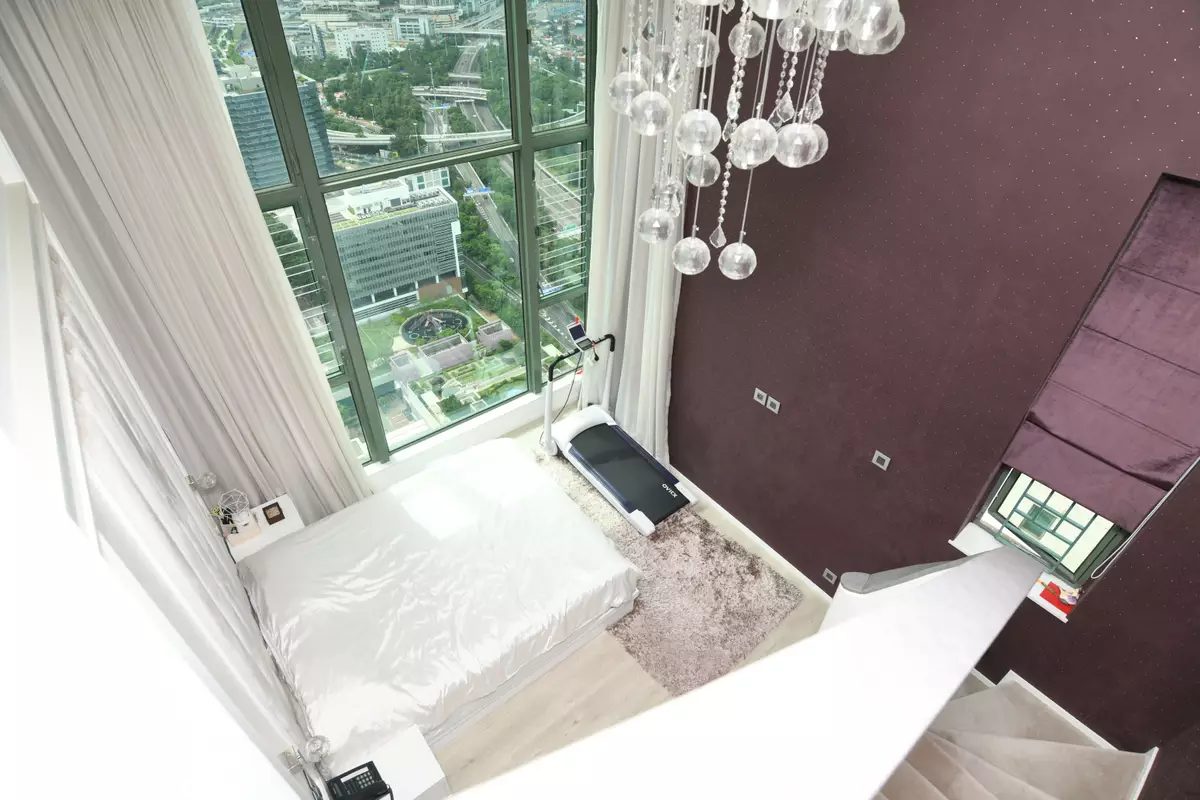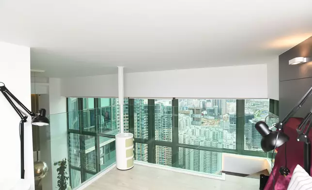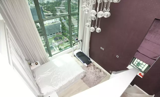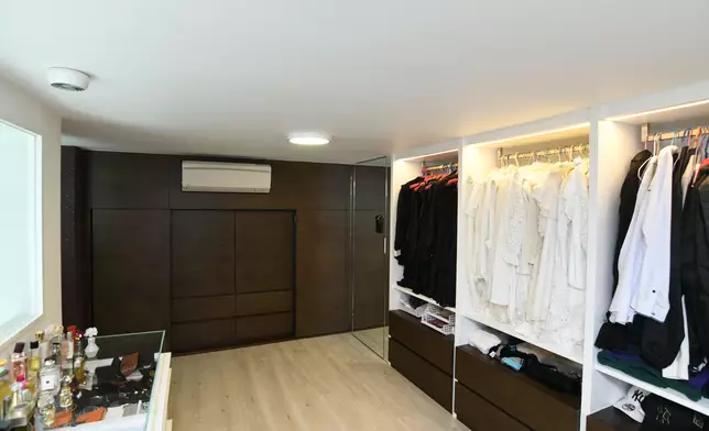 單位採5房2套連衣帽間設計,現場所見建有閣樓,善用了樓底高曠的優點。主人套房同備有近落地巨形玻璃窗,引景入室,其中酒紅色的主牆,配襯純白寢具及水晶吊燈,甚是高貴。