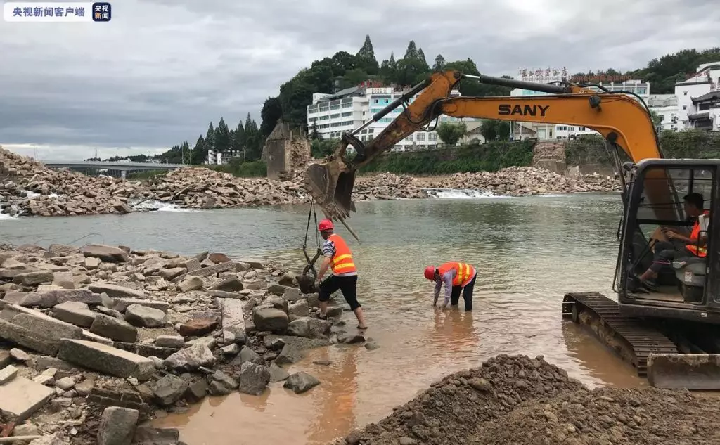 鎮海橋是安徽省現存不可多得的明代大型石拱橋之一,也是全國重點文物保護單位。它是6墩7孔石拱橋,曾歷經數次水毀和修復,今年7月7日再次被洪水沖毀。隨後,黃山市第一時間作出修復鎮海橋的決定,並向國家和省文物局彙報。今年8月,黃山市組織專業力量全面搜集鎮海橋文物相關資料,廣泛徵求各方意見,科學制定修復方案,並對鎮海橋橋墩區域、河道等散落構件和石料進行精心打撈歸集。