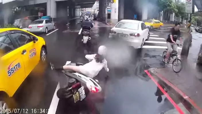香港索女電單車手失事倒地受傷,成為網民熱話。台灣最近亦有熱褲女電單車手出事跌親,但大家的焦點似乎不是她的傷勢,而是她一雙白滑美腿。